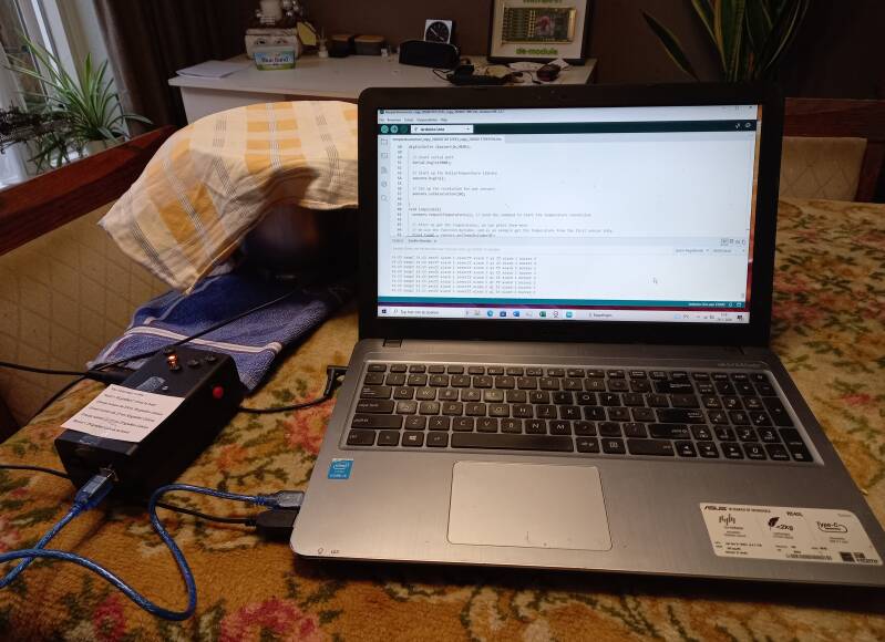 De gemeten temperatuur wordt ook via de seriële monitor weergegeven zodat gecontroleerd kan worden of de meting correct is.
